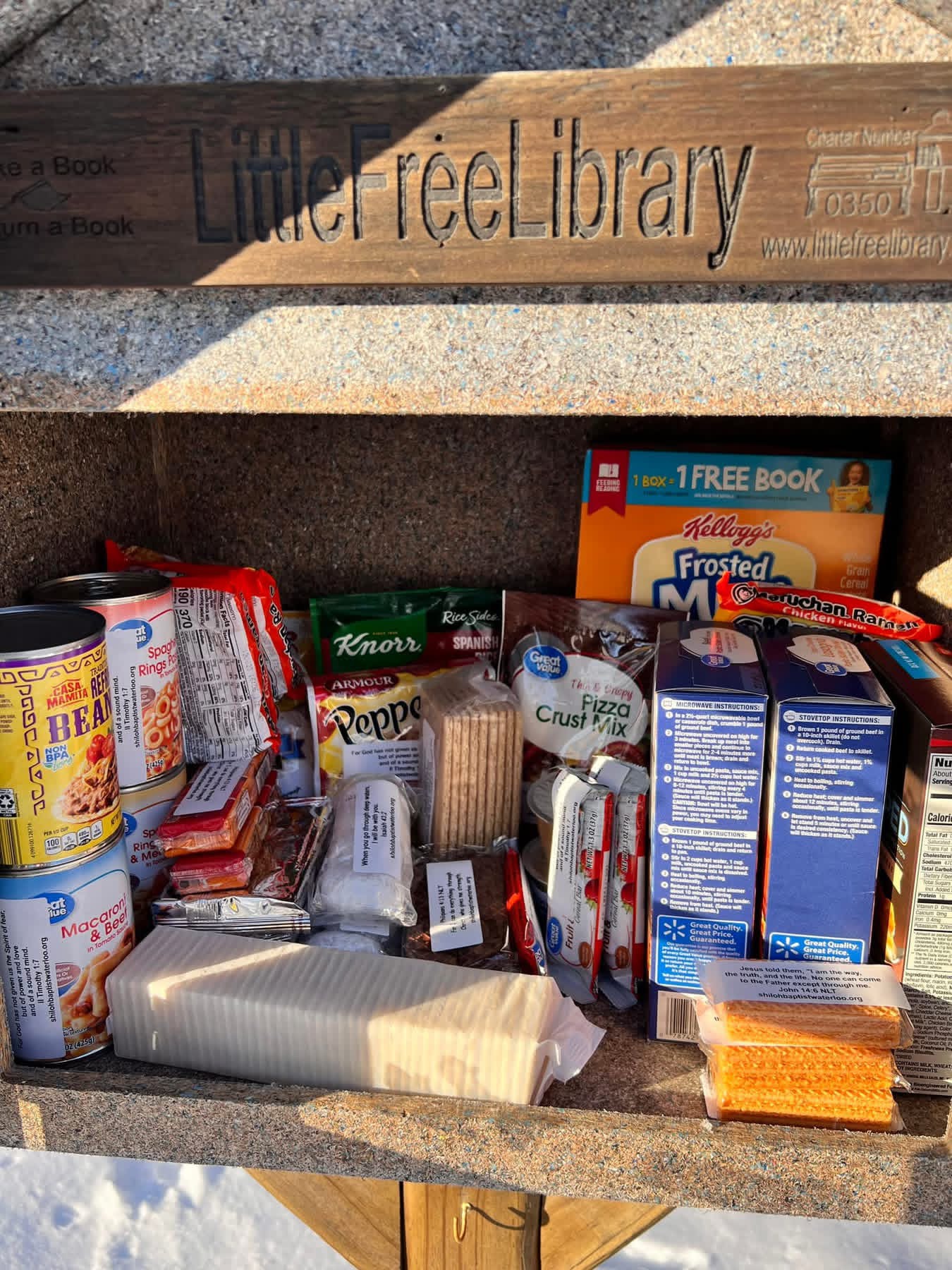 | Description | A Free Pantry since April 2020, open 24/7 on the corner of 8th and College in Cedar Falls. Donations of unexpired, unopened food accepted. Everyone welcome. We take care of us. |