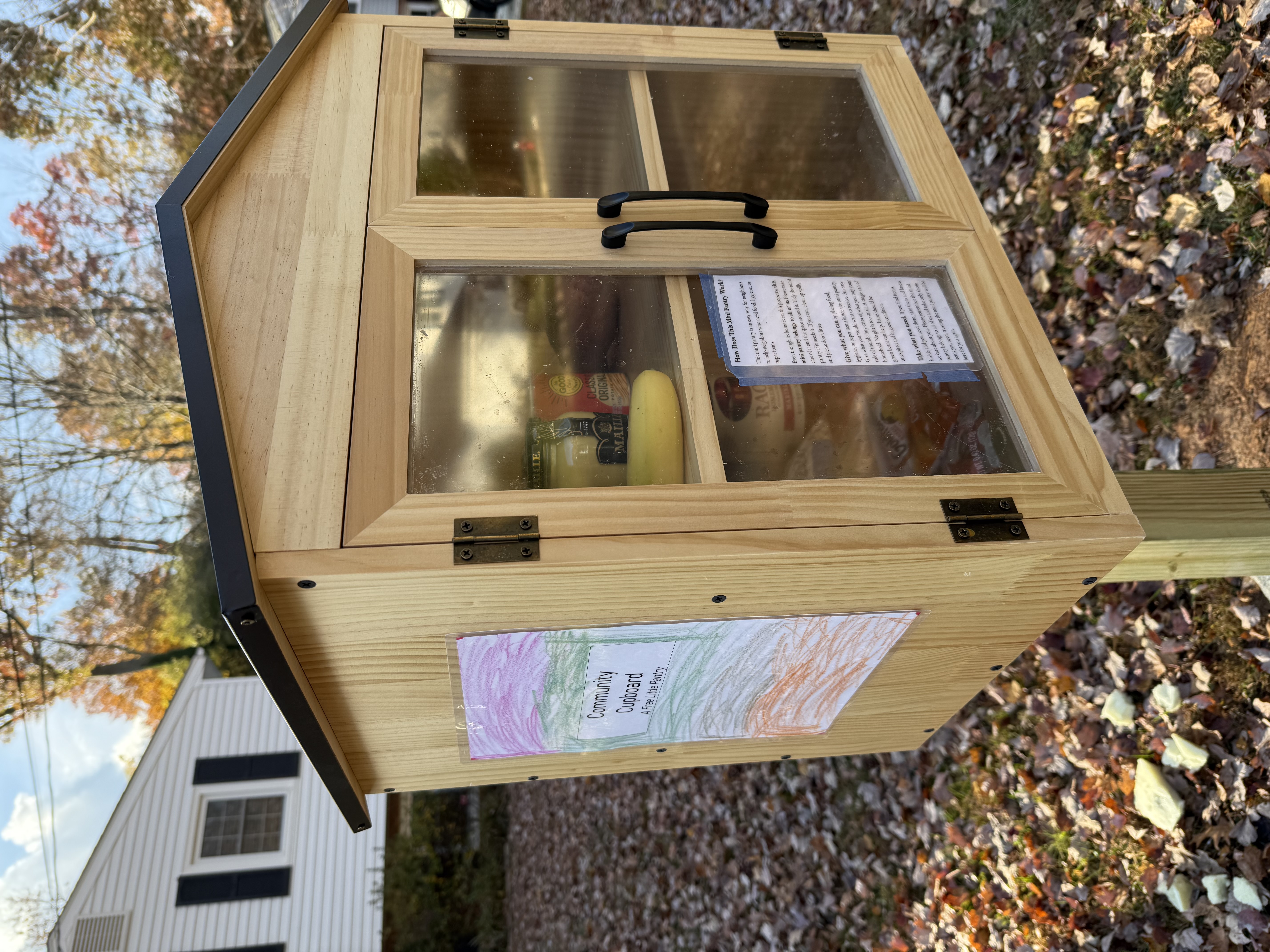 A free little pantry located in the Rutherford community. Take what you need and leave what you can!