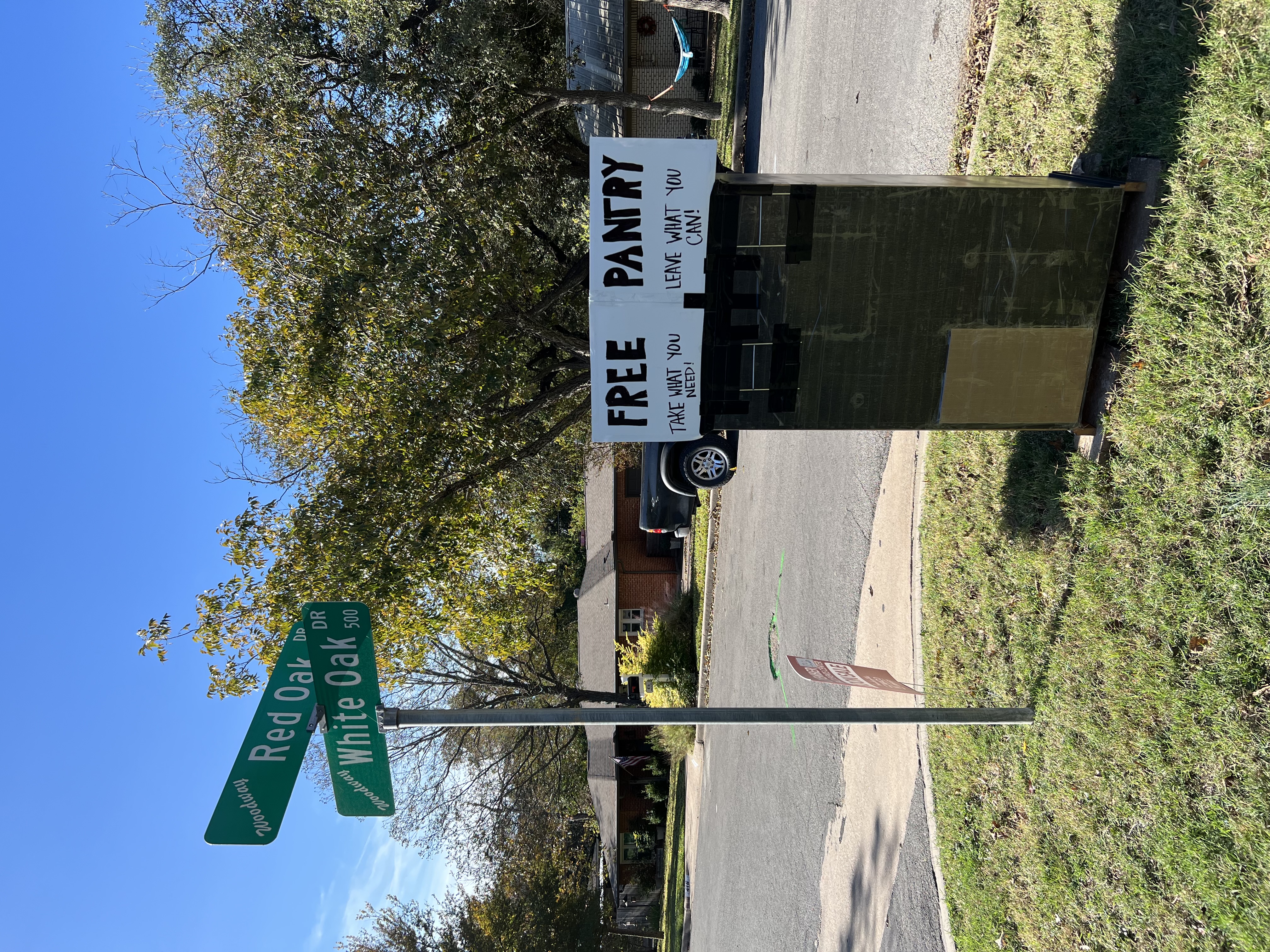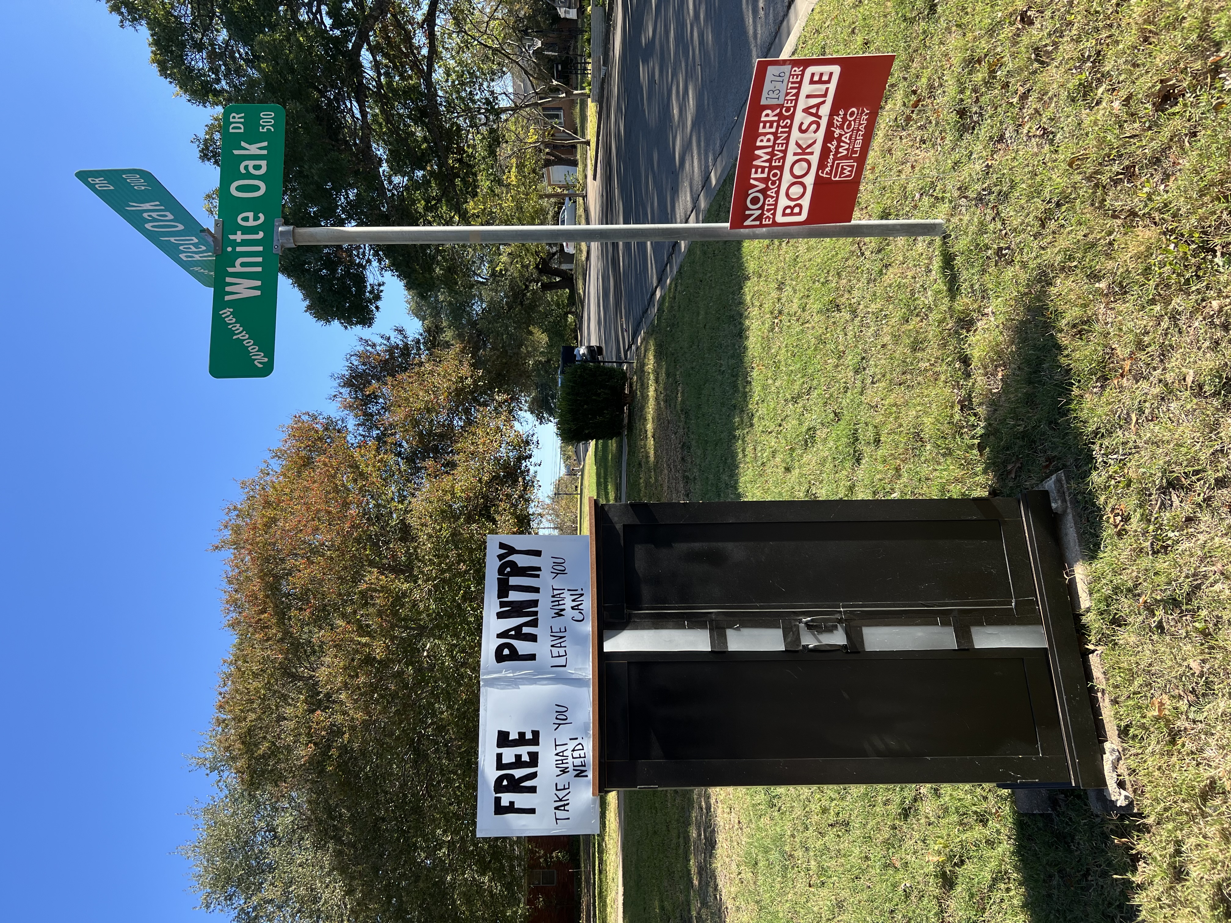 | Description | Free pantry to anyone in need. Take what you need, leave what you can! On the corner of Red Oak Dr. and White Oak Dr. in Woodway, TX. |