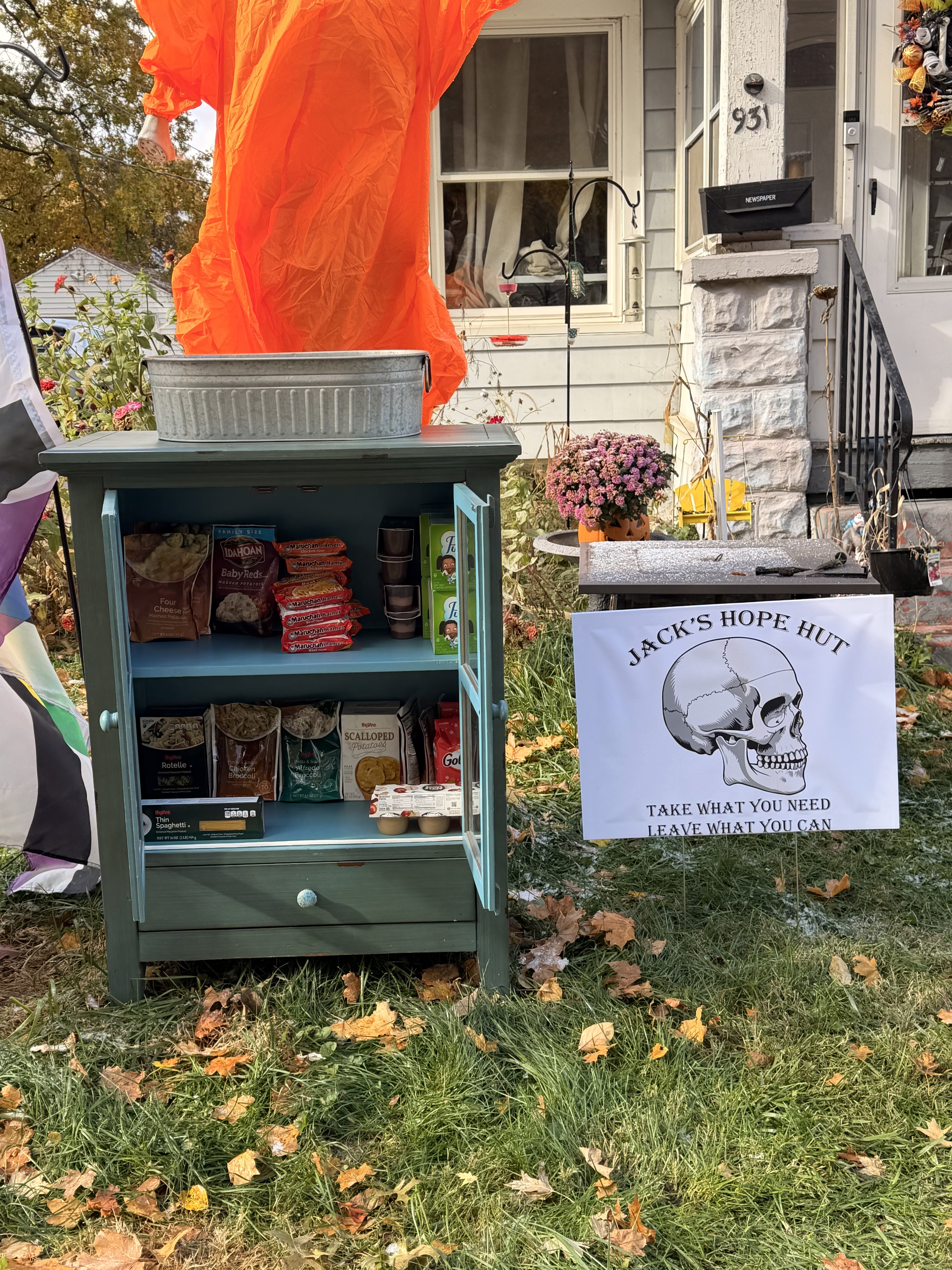 | Description | Our friendly neighborhood skeleton, Jack, wants to make sure no one goes hungry! Seasonally appropriate items available to anyone who needs it, no questions asked! Take what you need, leave what you can! |