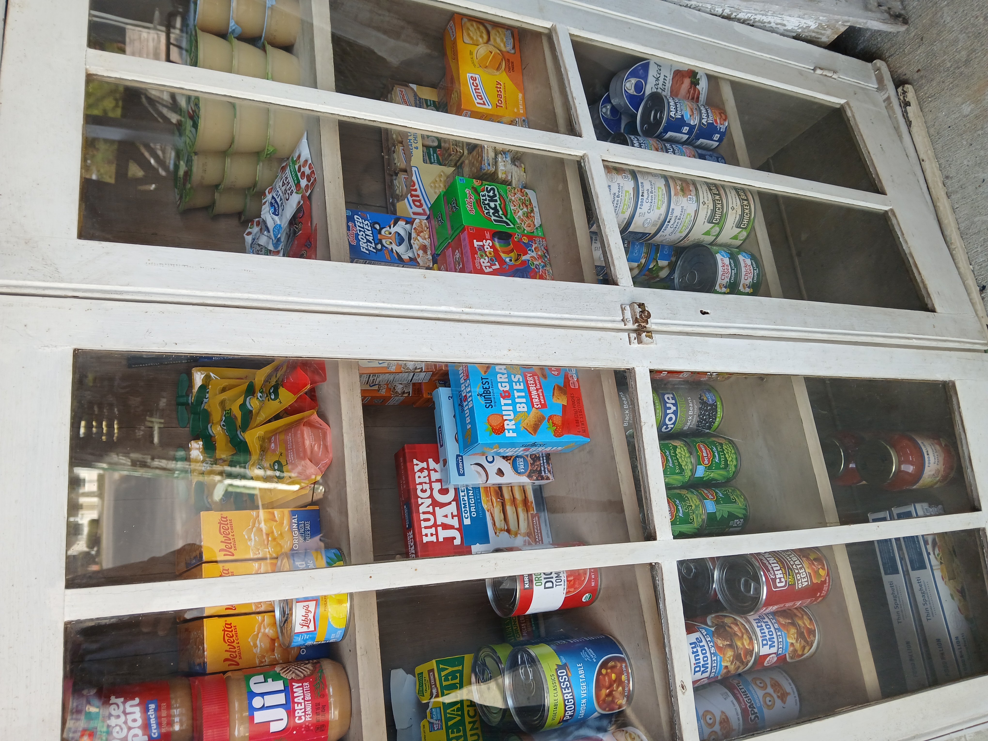 | Description | Pantry has canned foods, granola bars, peanut butter, jelly and the like as well as pet food, feminine hygiene and books for children and teens. |