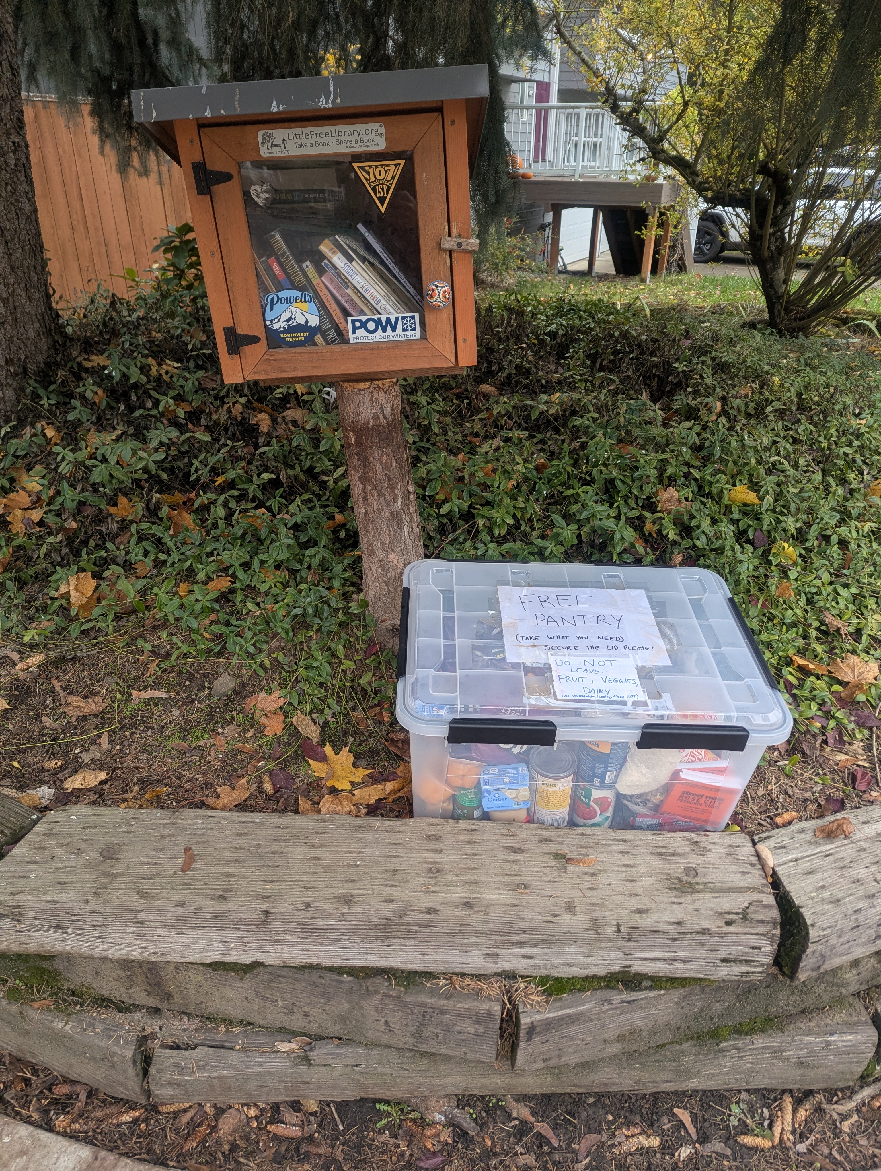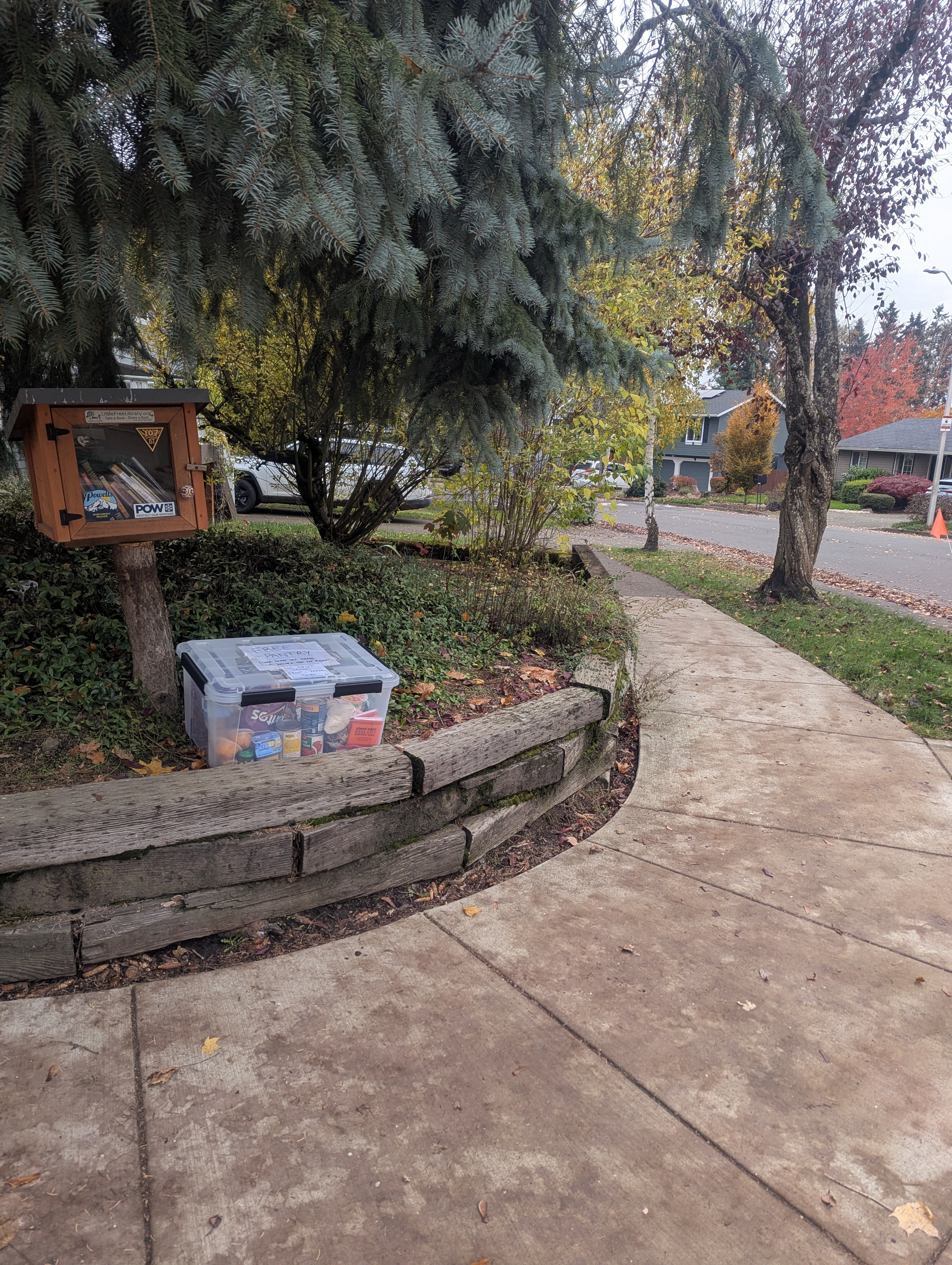 | Description | This Free Pantry is a clear waterproof box with instructions to take what you need! Please do not leave perishables like fruits and veggies since there is no ventilation and no temperature control. It is at the intersection of SW 135th Ave and Weir Rd in Beaverton Oregon on the southeast corner. It is near the street address 10010 SW 135th Ave Beaverton, Or 97008. |