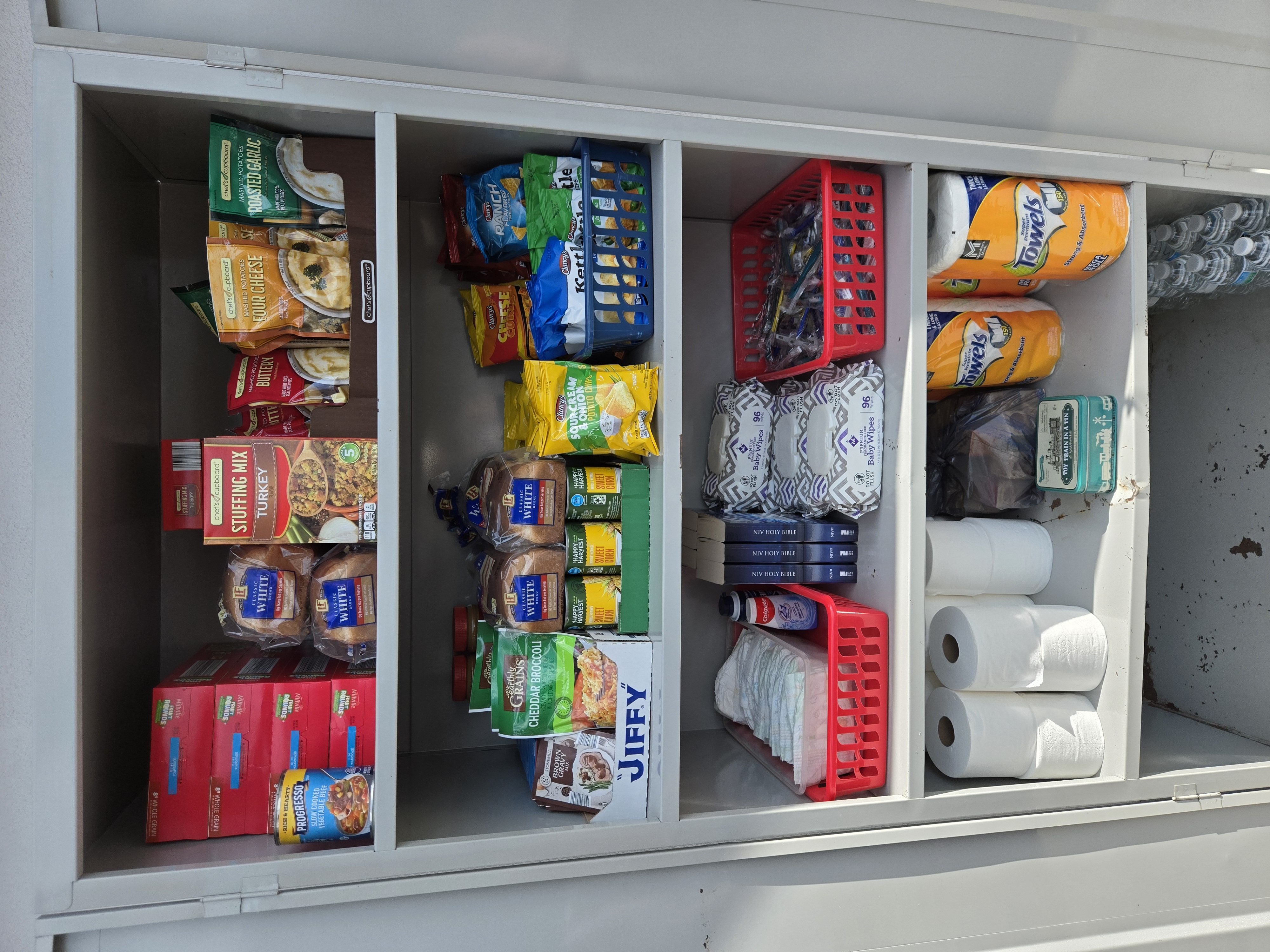 | Description | A small community pantry offering free non-perishable food and hygiene essentials to anyone in need. Take what you need, leave what you can. Open 24/7. |