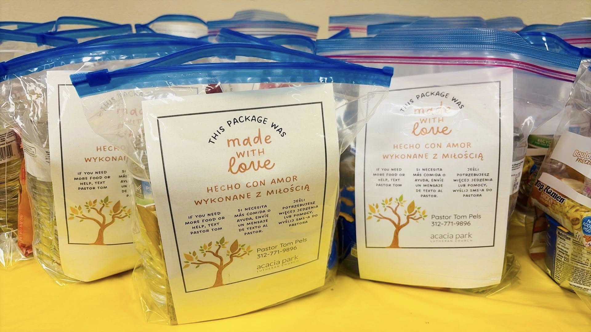 We provide food bags designed to provide a day's worth of food and snacks with little to no cooking required. These bags are great for youth who may have limited cooking skills. Bags are placed in a bin in outside the main doors of the church and is accessible 24/7. The bin is monitored regularly and refilled at least twice a week. You may contact Pastor Tom at 312-771-9896 if you are in need of additional food, supplies, or pastoral care |
