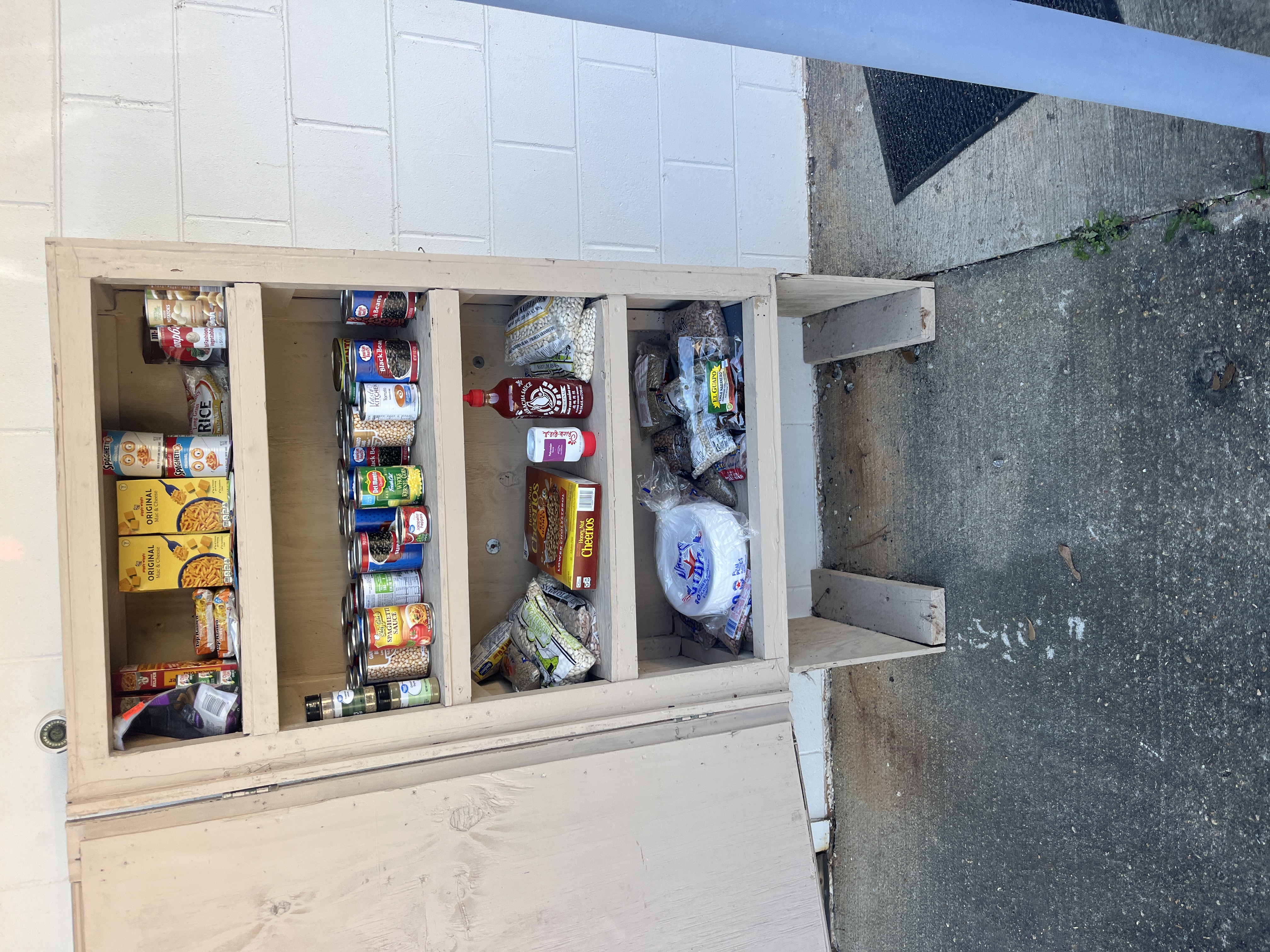 | Description | There is a white building to the right of the fire department, the blessing box is outside this building. There is a hatch lock on the right side. |